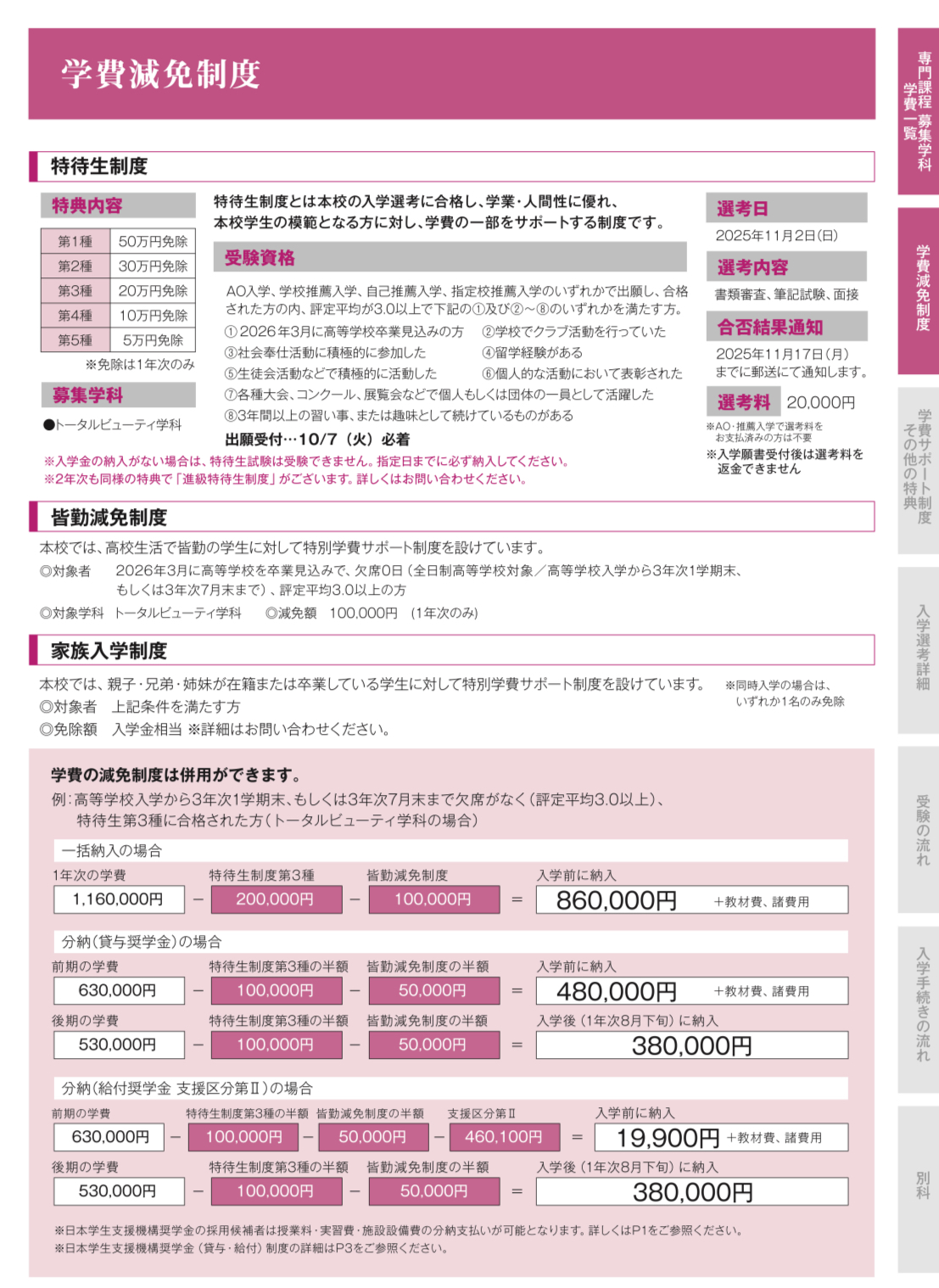 学費・学費減免制度・奨学金・その他特典