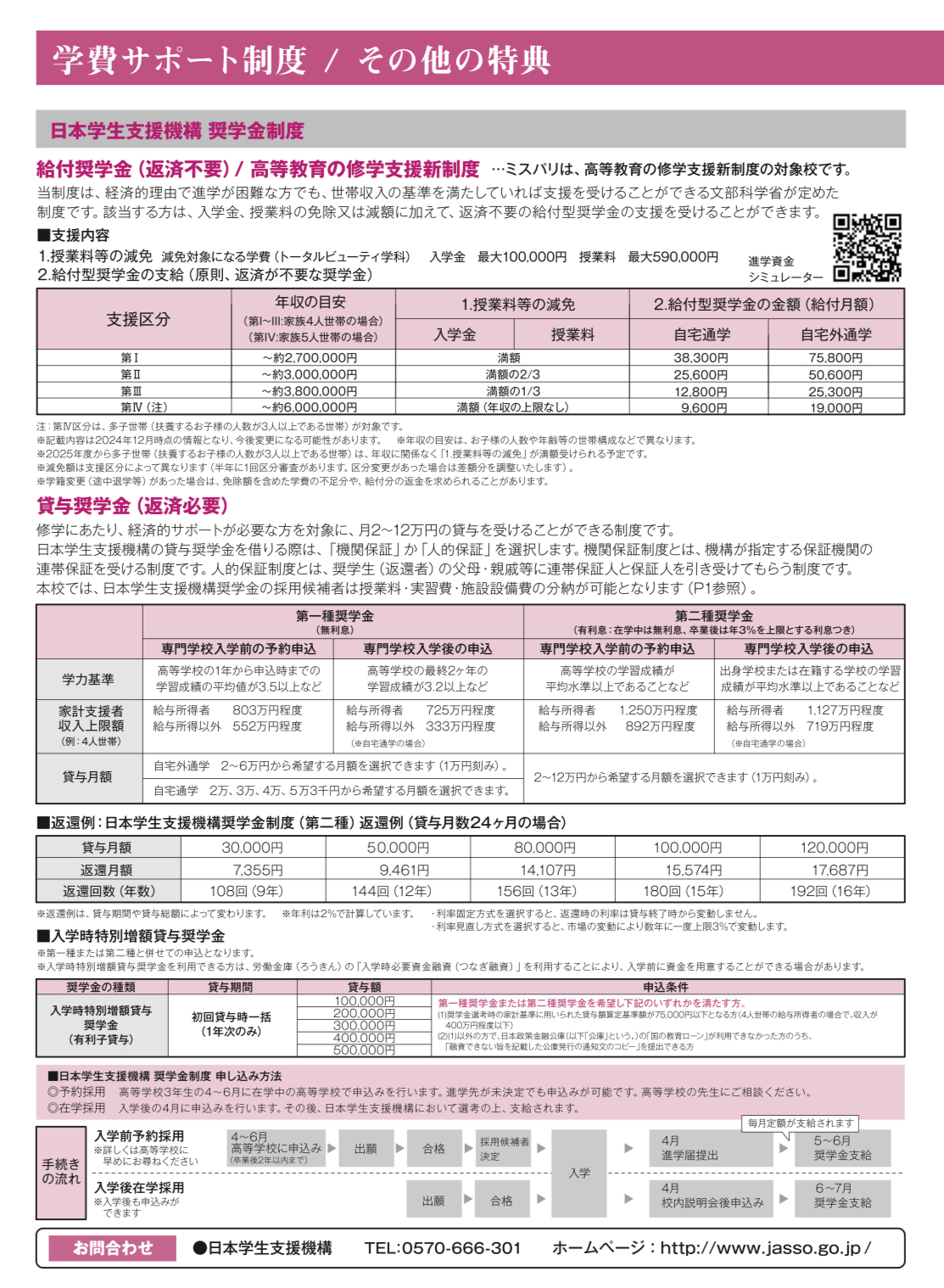 学費・学費サポート制度・奨学金・その他特典