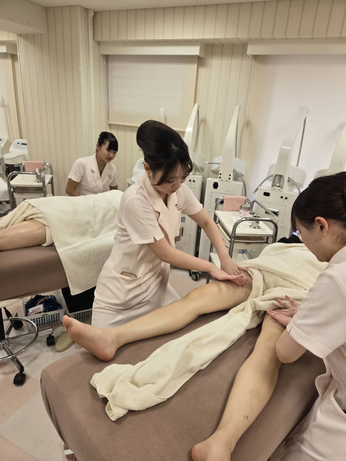 ボディエステも在校生二人がかりでリズムやタッチを合わせて、魂込めてマッサージ👼👼